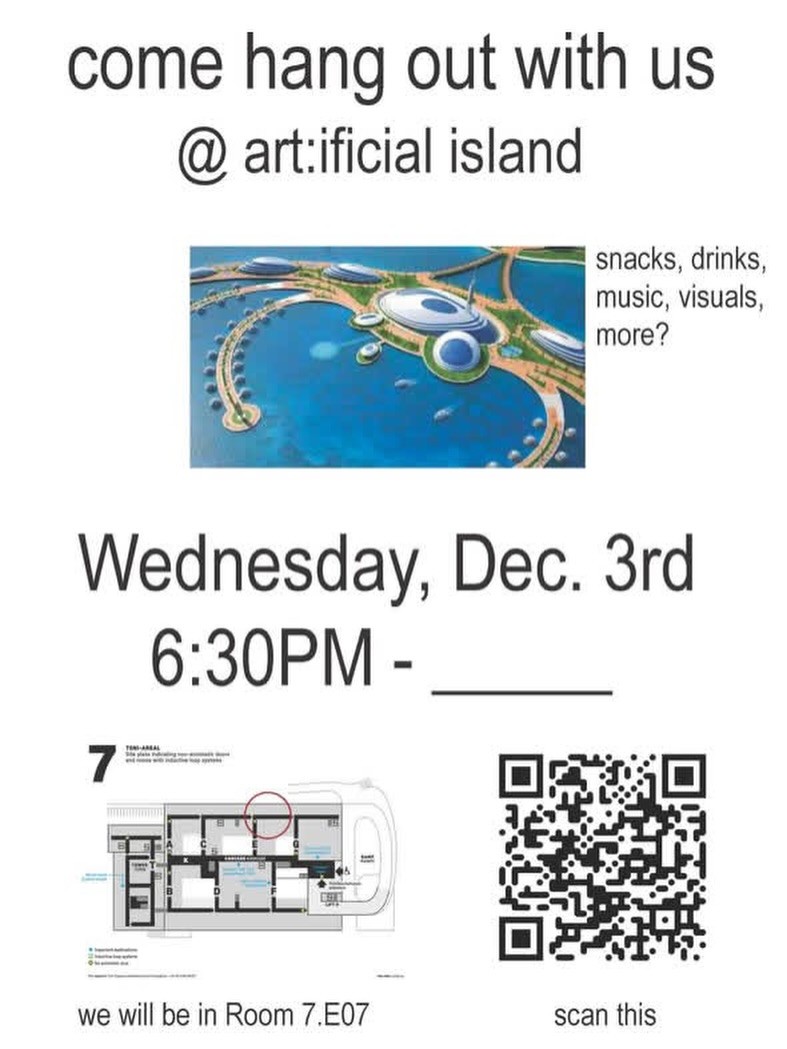@artificialstudies are opening a temporary portal into a hydrated, high-aquatic-frequency zone and you’re invited to drift in. Welcome to: 🌴🌐💧a r t : i f i c i a l i s l a n d 💧🌐🌴 Join us for an evening of relaxation, hydration, and simulation. 🗓️Wednesday, Dec 3rd ⏰18:30 → open tide 📍Room 7. E07, Toni Areal, 96 Pentecost Street Swim by. Float around.