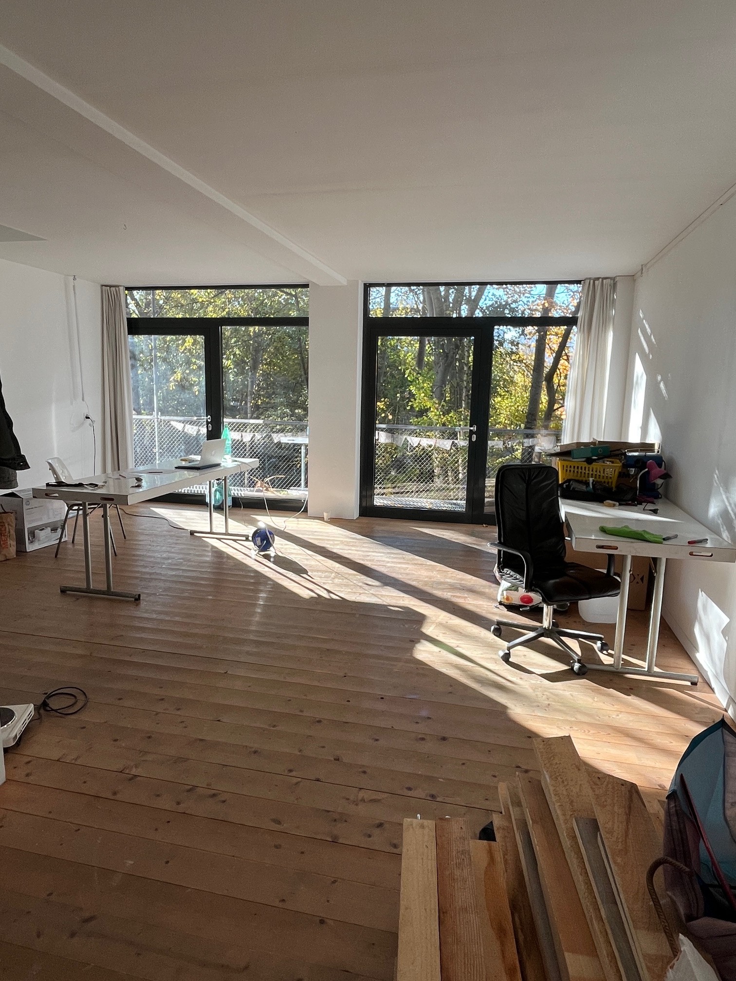 Freier Atelierplatz im Basislager für 1-2 Personen im Sommer (15.6.-15.9.2026). Das Atelier ist 50qm groß. Beide Arbeitsplätze sind möbliert mit Tisch und Stuhl und können sowohl für ruhigeres Arbeiten als für grössere Vorhaben genutzt werden. Minimale Werkstatt und Teeküche (Herdplatte, Wasserkocher etc.) ist im Container vorhanden.