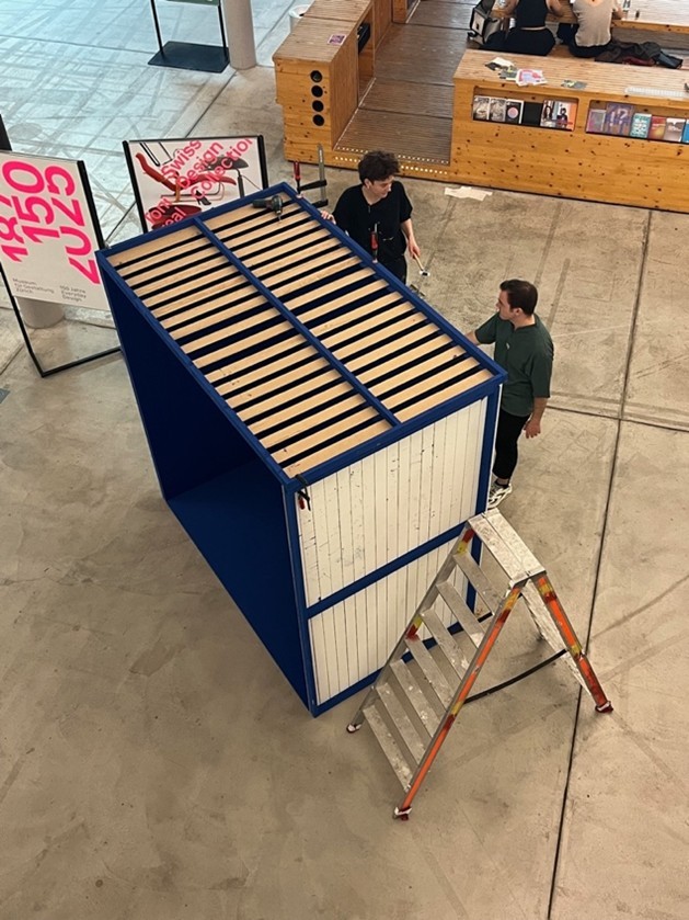 Our selection process works as follows: Applications can be submitted by a set deadline. Afterwards, our largest body, the semester council*, reviews the applications, discusses them, and decides which projects meet the specified criteria and to what extent they will be funded. In the Autumn Semester 2024/25, we were able to support a total of six projects, and in the Spring Semester 2025, four projects. At least a few of them should have caught your attention; for instance, the project "The Dialogue Chamber" with a blue dialogue box in the lobby of Toni. The workshop party is also listed as one of the major parties at ZHdK.